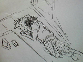 汗かいてたので、ベットには寝ず、カーペットの上で寝ました。
